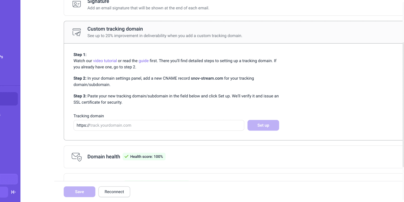 如果您计划追踪邮件打开或点击情况,请设置自定义追踪域名。这可以使追踪更加安全,并降低邮箱服务商将您的邮件标记为可疑邮件的风险。