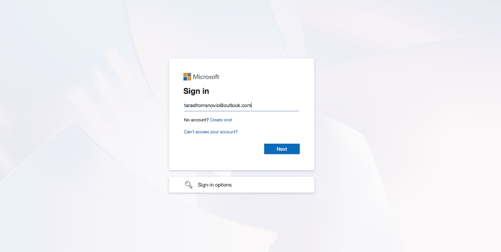 将打开一个微软登录窗口。请输入您要连接的邮箱的凭据。