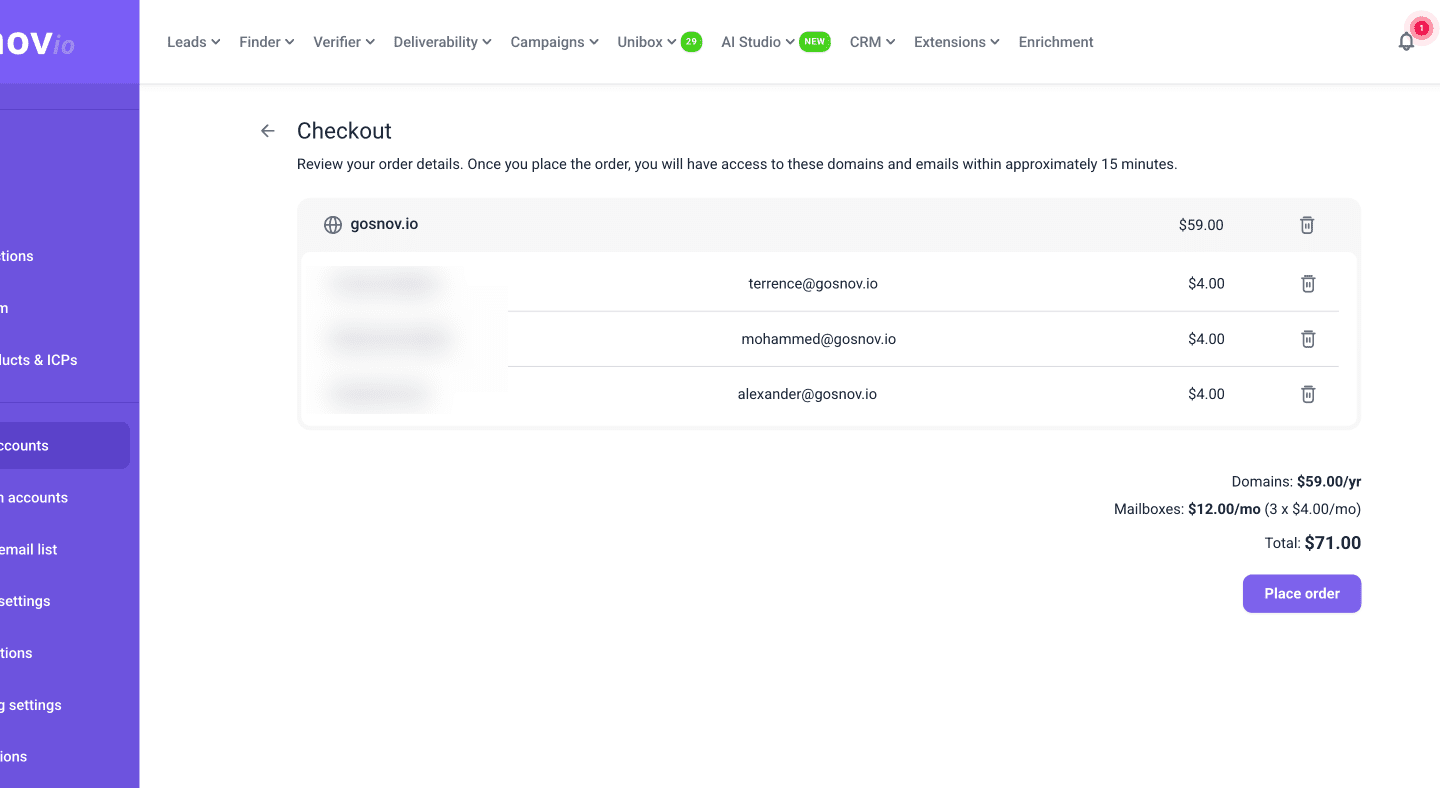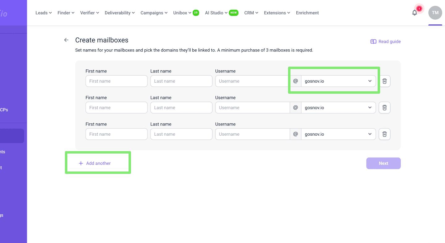 我们建议每个域名设置 3-5 个邮箱,以实现可扩展性和维护成本的最佳平衡。最低购买量是 3 个邮箱。