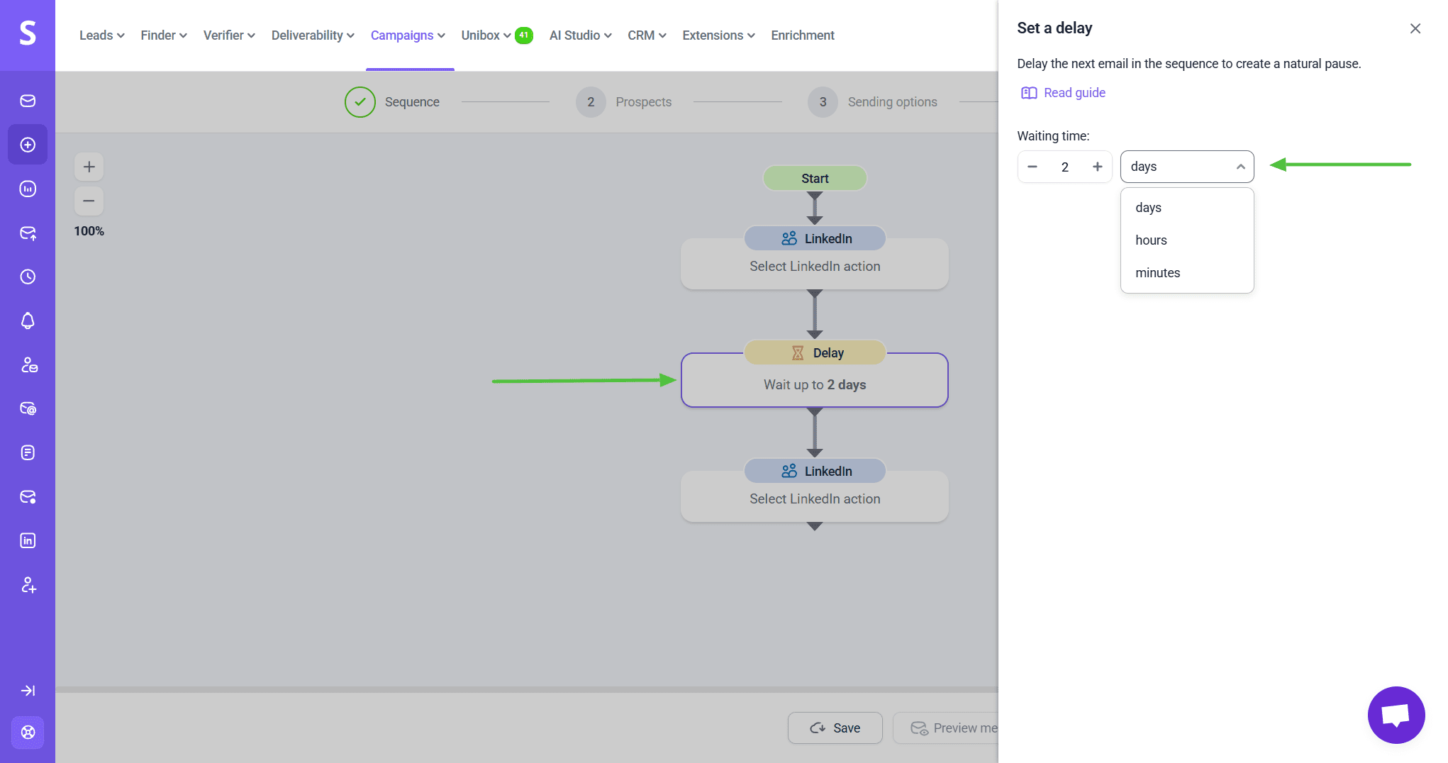 使用 Snov.io 中的领英自动化时,可以通过安全的方式增加每日操作限制。在这一篇知识库文章中了解更多信息。