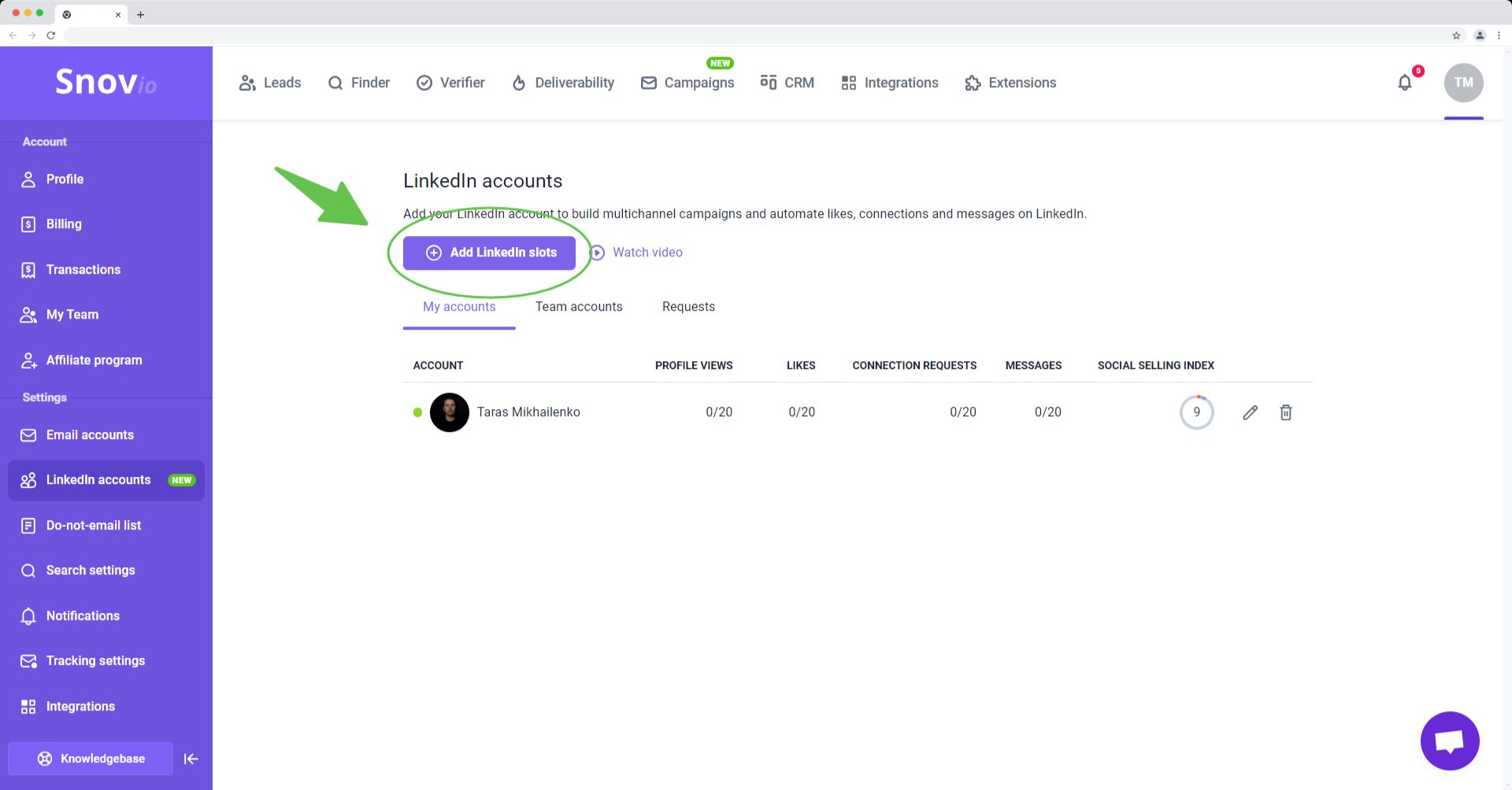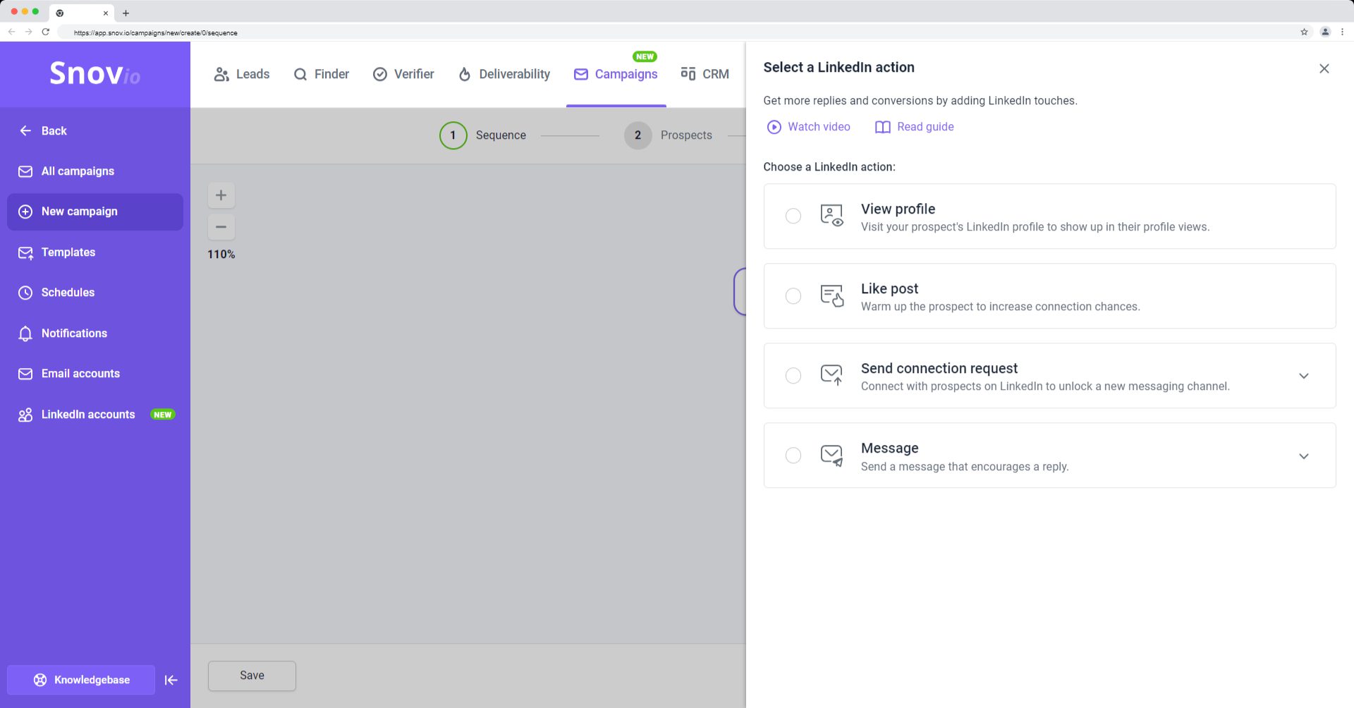 Snov.io 的工具集包含一个领英自动化插件,可帮助您为客户运行领英活动,或将自动化领英互动作为额外的推广渠道。