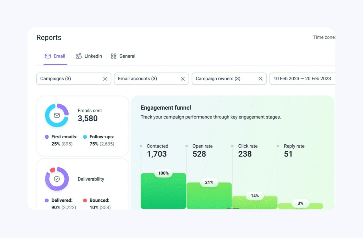 您将获得一个内置的送达率软件包,其中还包括一个内置的预热工具,该工具可以准备帐户以进行推广,并检测任何潜在问题,使您能够在问题影响您的营销活动之前解决它们。